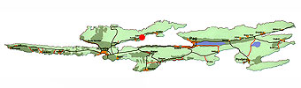 Proteže se preko dvije uvale, okrenuta prema otvorenom moru,