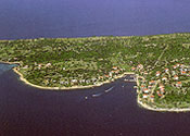 Proteže se preko dvije uvale, okrenuta prema otvorenom moru,